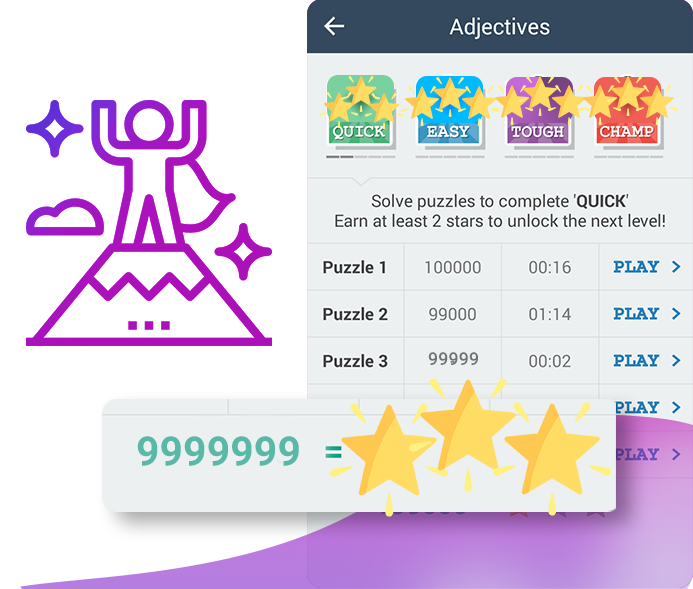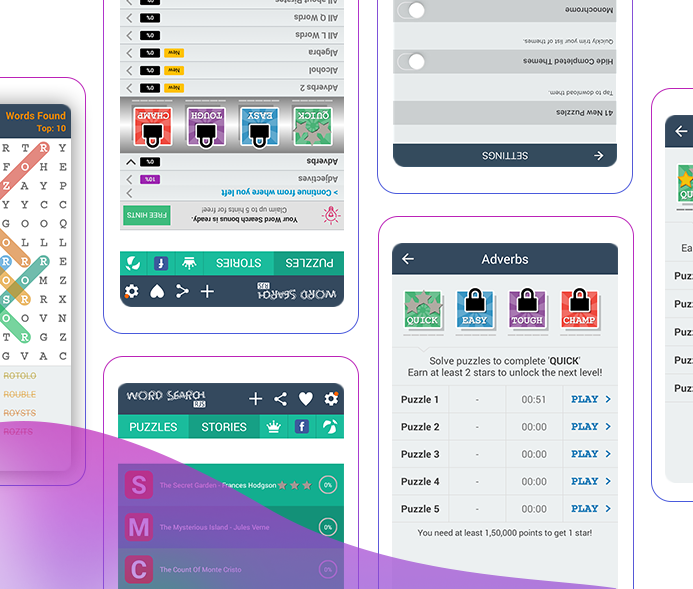 Pick up your desired theme and progress from ‘easy to ‘tough’ levels.